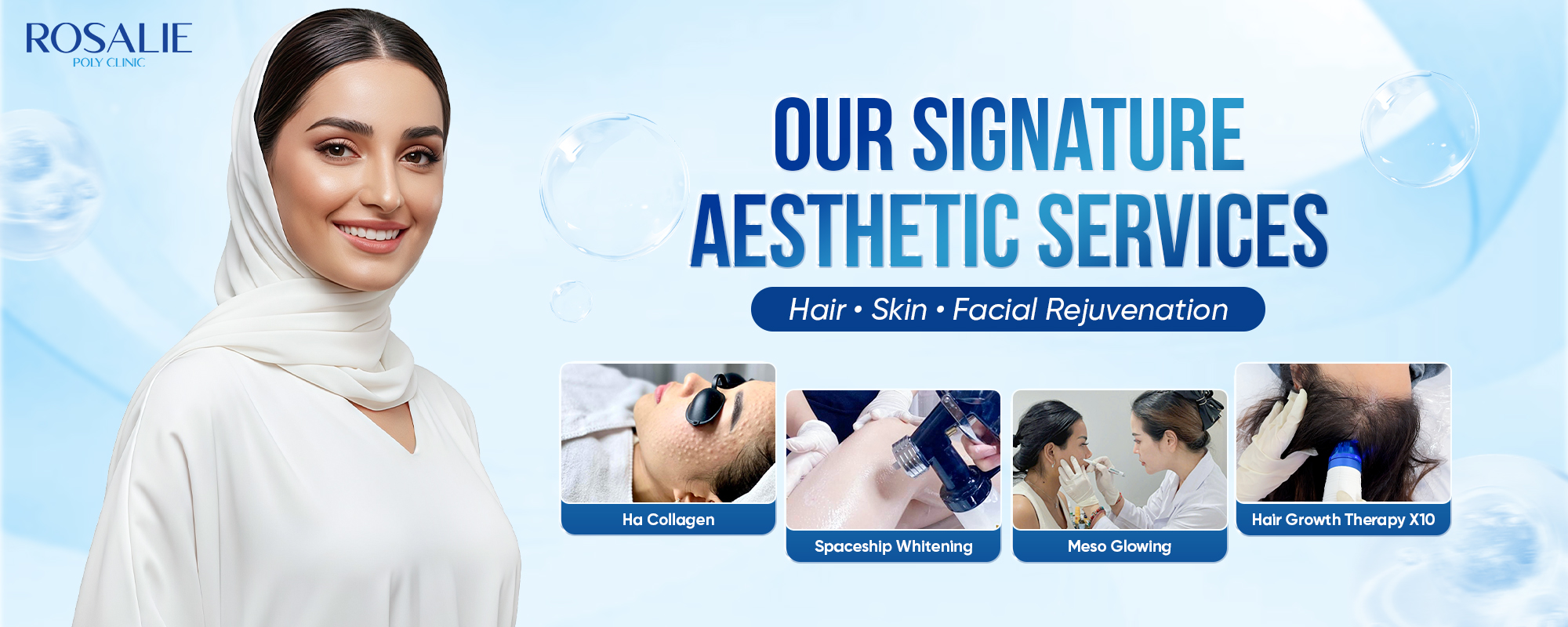 Rosalie specializes in hair regrowth treatments, premium skin whitening, HA collagen therapy, and meso glowing treatments, delivering safe, effective, and personalized results tailored to each client.